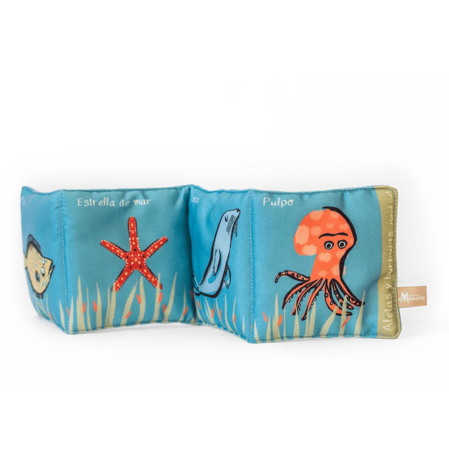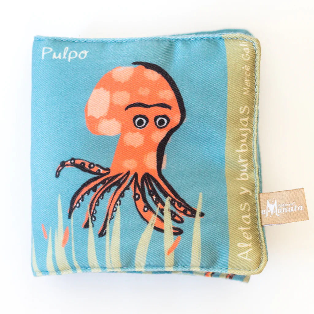 Aletas y burbujas es un libro de tela, ideal para iniciar en la lectura a los recién nacidos. Es perfecto para que madres y padres fortalezcan el vínculo con su bebé a través de la lectura, el juego y la empatía de una manera amorosa y cercana.