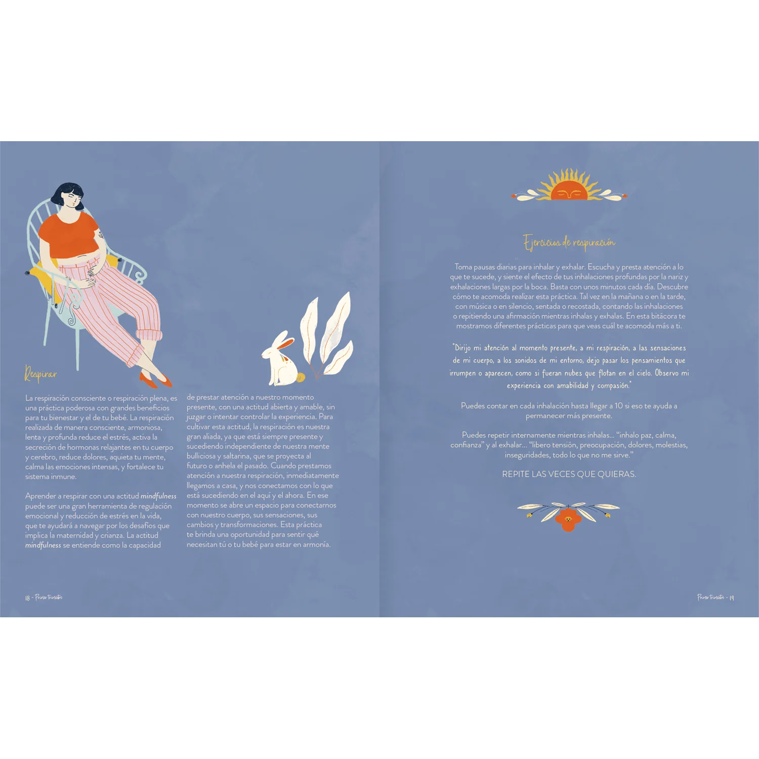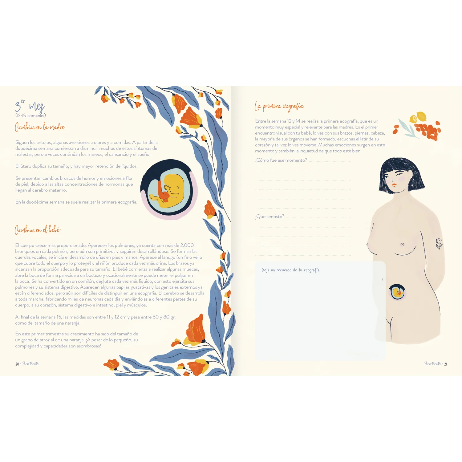 La identidad de ser madre no surge de un momento a otro, sino gradualmente a lo largo de los nueve meses de espera y continúa muchos años después del nacimiento. Esta bitácora es una oportunidad para registrar el proceso de embarazo, favorecer el autocuidado, además de ampliar y enriquecer la mirada hacia el mundo del bebé en el útero.Por medio de actividades o experiencias sugeridas, esperamos que la mujer pueda vivir el embarazo de una manera lúdica y entretenida, conectada con el proceso semana a semana, mes a mes, cultivando su bienestar y creando las condiciones óptimas para que emerja todo aquello que tiene que florecer y que le ayudará a experimentar su proceso de embarazo de manera más plena y consciente en un periodo marcador en su vida y la de su bebé.