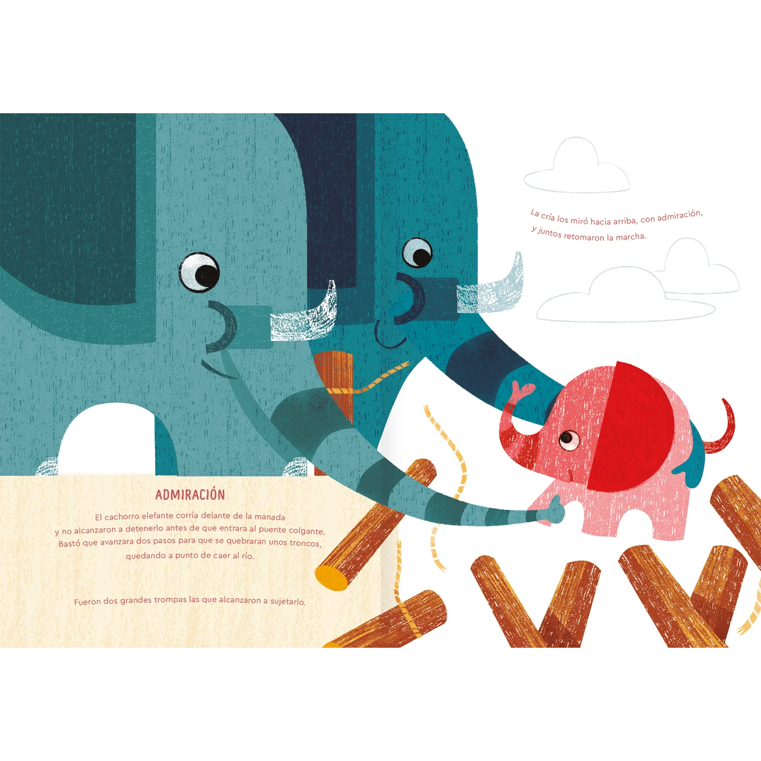 Este libro contiene varios microcuentos, en que los niños y niñas podrán reconocer las señales corporales propias de cada emoción y así expresarlas de manera más fluida. Cada relato ejemplifica una emoción y cómo los animales reaccionan ante ella, lo que moverá al lector a identificarse con situaciones personales. Alegría, tristeza, rabia, orgullo, paciencia son algunas de las emociones que se encuentran en este libro. Las llamativas ilustraciones de Tania Recio le aportan riqueza y fluidez a la lectura.