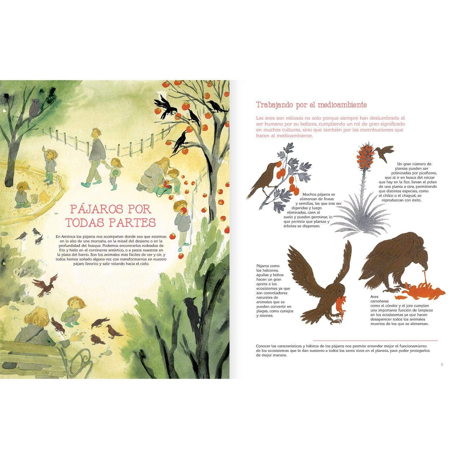 Los pájaros nos acompañan en los lugares más asombrosos del continente americano: en la profundidad de los bosques, en el hielo y frío de la Antártica, en lo más alto de una montaña y también a pasos nuestros en la plaza del barrio. Vuelo de pájaros americanos es una invitación a convertirnos en naturalistas y adentrarnos en el mundo secreto de las aves: sus plumas, el vuelo, sus antepasados, sus diferentes picos, garras y nidos. Todo esto mientras nos maravillamos con su belleza y nos vamos transformando en protectores de toda la naturaleza que nos rodea.